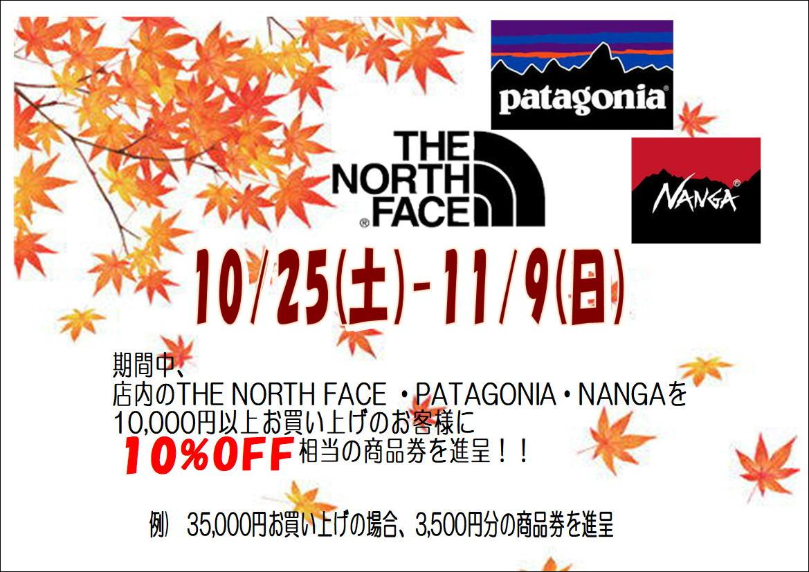 期間中は、パタゴニアの商品を2点以上お買い上げで、販売価格よりレジにて更に10%OFFさせて頂きます。