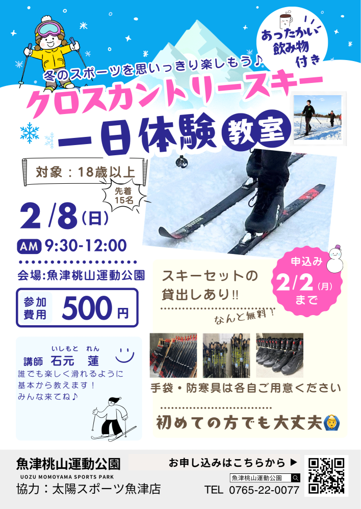 参加費 500円(スキーセットの貸し出しは無料)