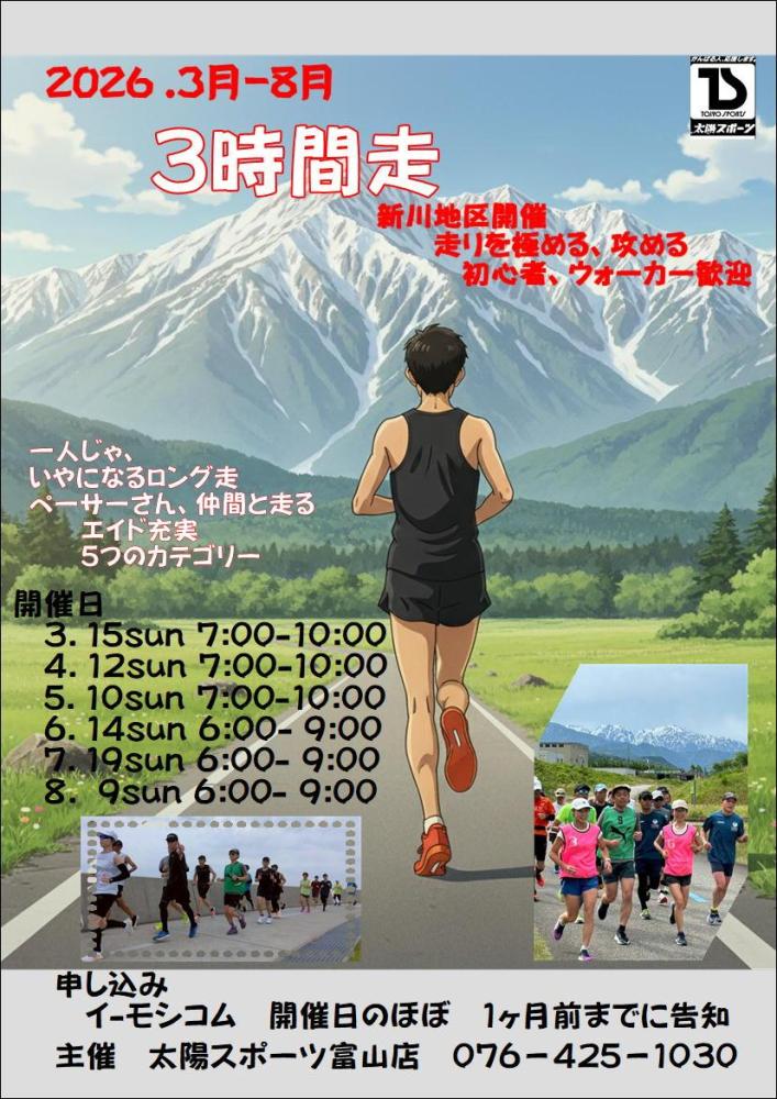 毎年恒例の3時間走を今年も開催いたします。