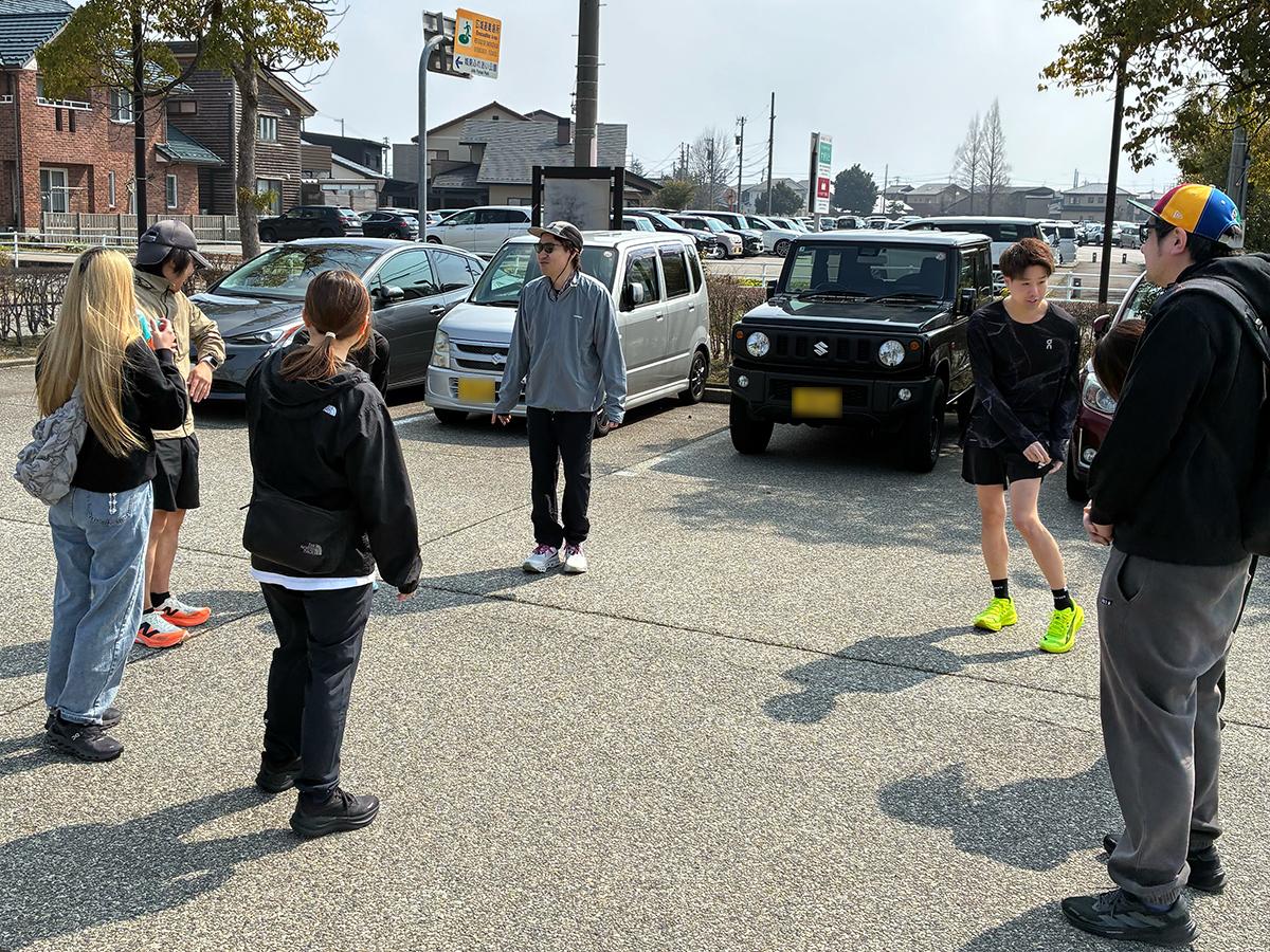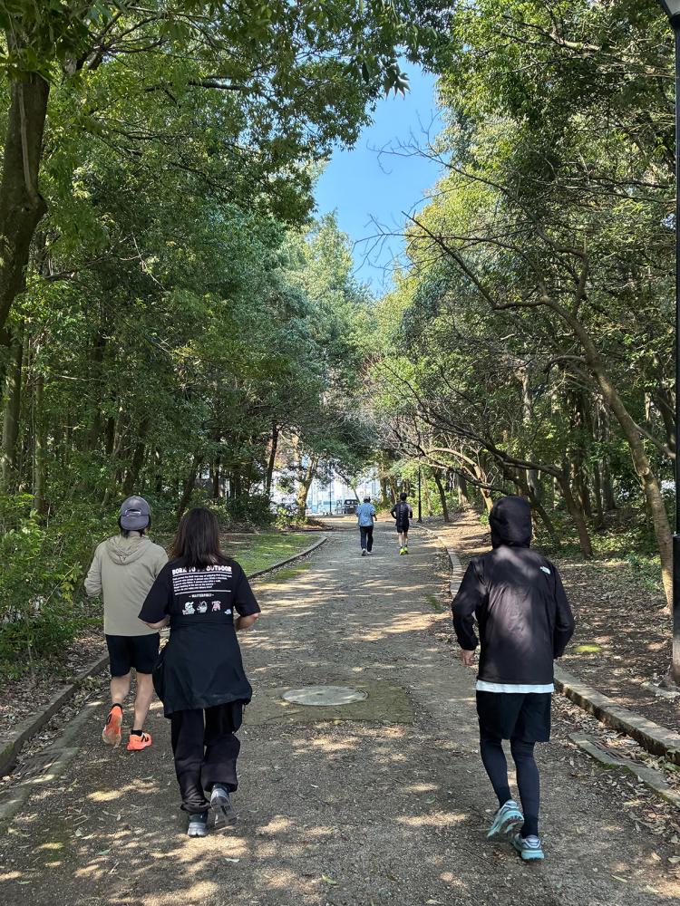 走る組は少し遠回りをして公園へ。