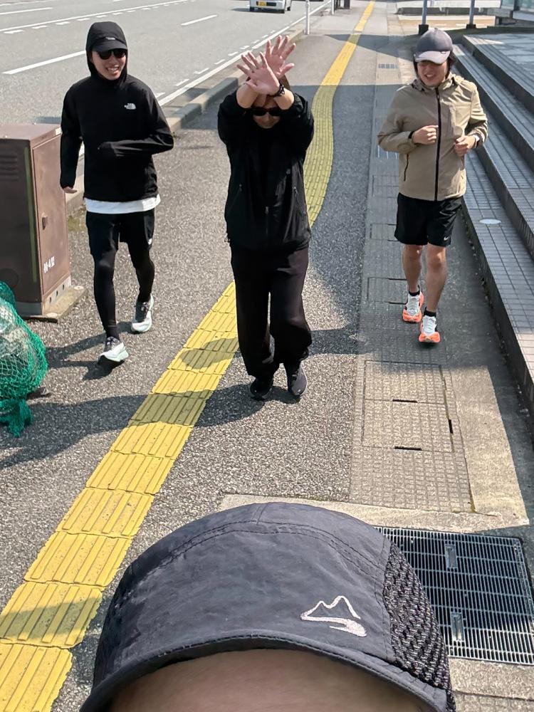 前髪を持っていかれる女性陣と熊最近走り始めたスタッフに合わせての~んびりゆっく~りペース。