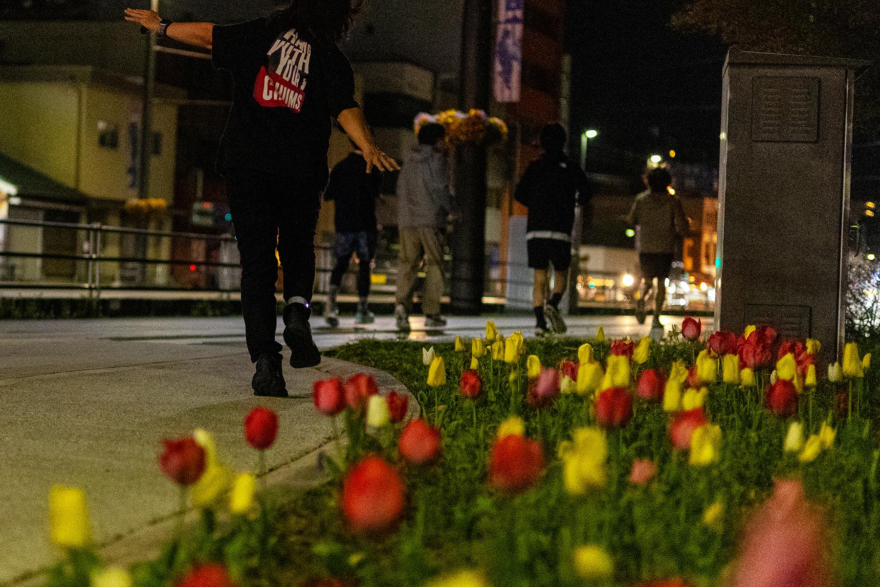 桜の前にチューリップ ランニング6名&自転車1名の計7名で夜の富山を駆け抜けました??