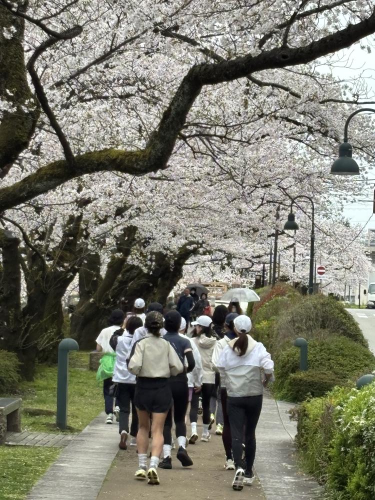 2日前から雨予報で最後までドキドキでしたが、程よい天気で最高の花見ランに…城址公園集合からの桜の名所である松川沿い~磯部堤の桜並木~富山駅前までゆっくりおしゃべりしながらのランでした。