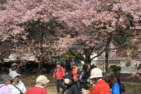 岩瀬カナル会館~岩瀬浜~河津桜鑑賞ノルディックウォークツアーへ